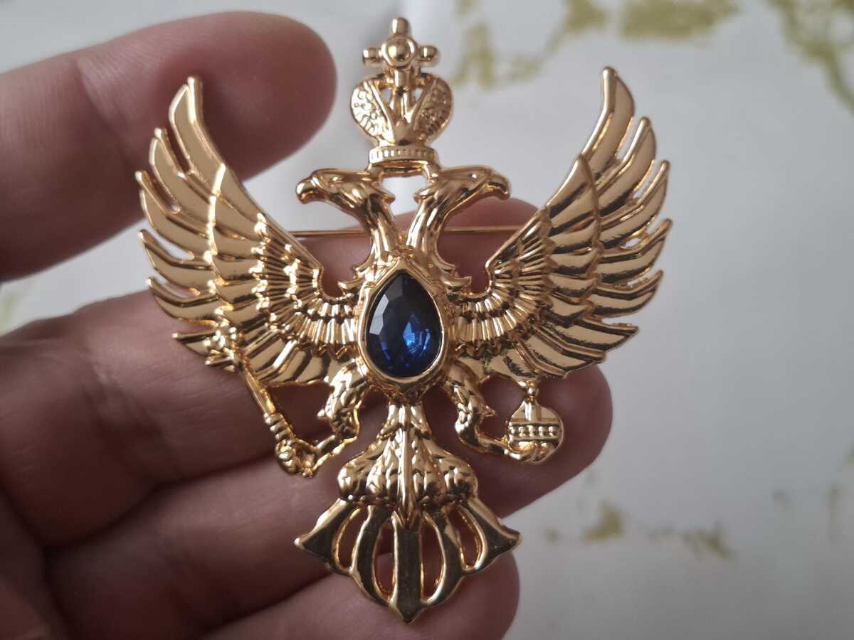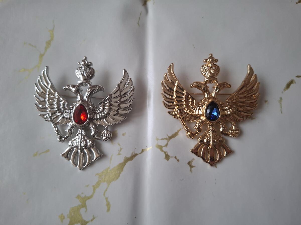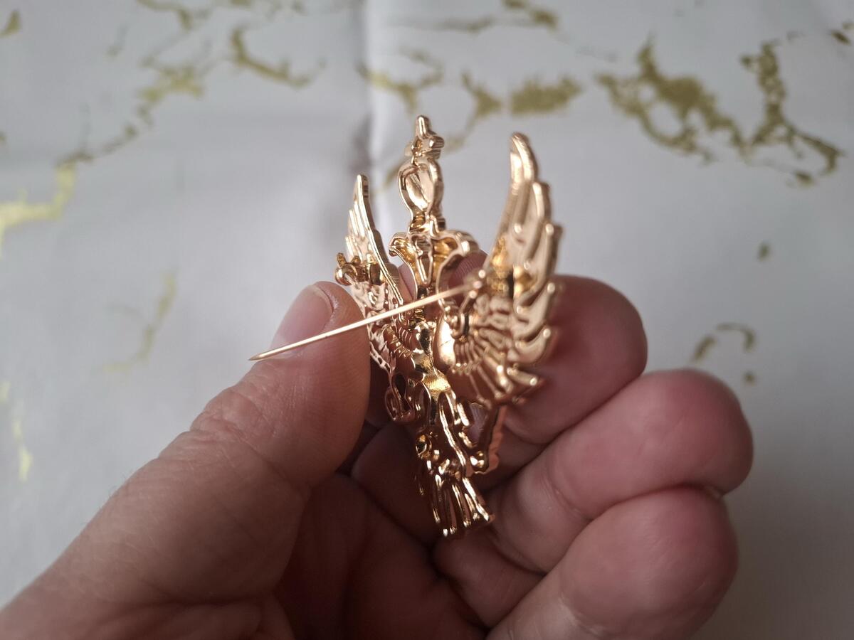 This is a very beautiful Coat of arms brooch in a silver and gold color. It is intended to be used as a brooch and can also be a good gift for your friend or relative.