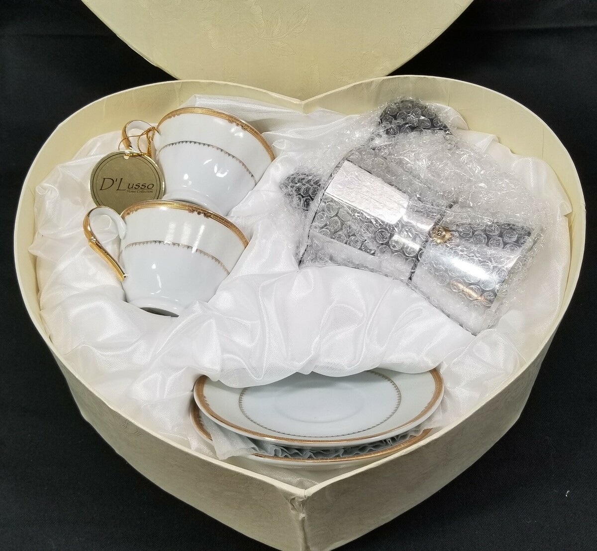 JJ) D'Lusso Home Collection Espresso Demitasse Coffee Cup Saucer Heart Gift Set