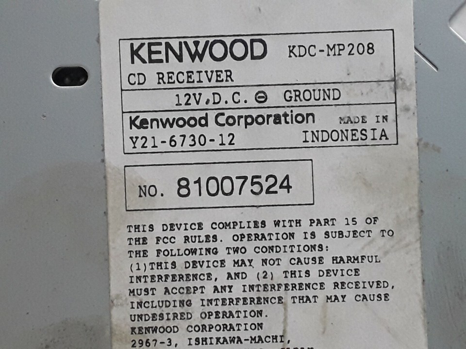 Kenwood AM FM CD radio receiver KDC-MP208 Y21-6730 12