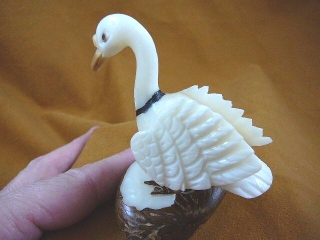 (TNE-BIR-GO-296A) white Goose or Swan TAGUA NUT palm figurine geese duck