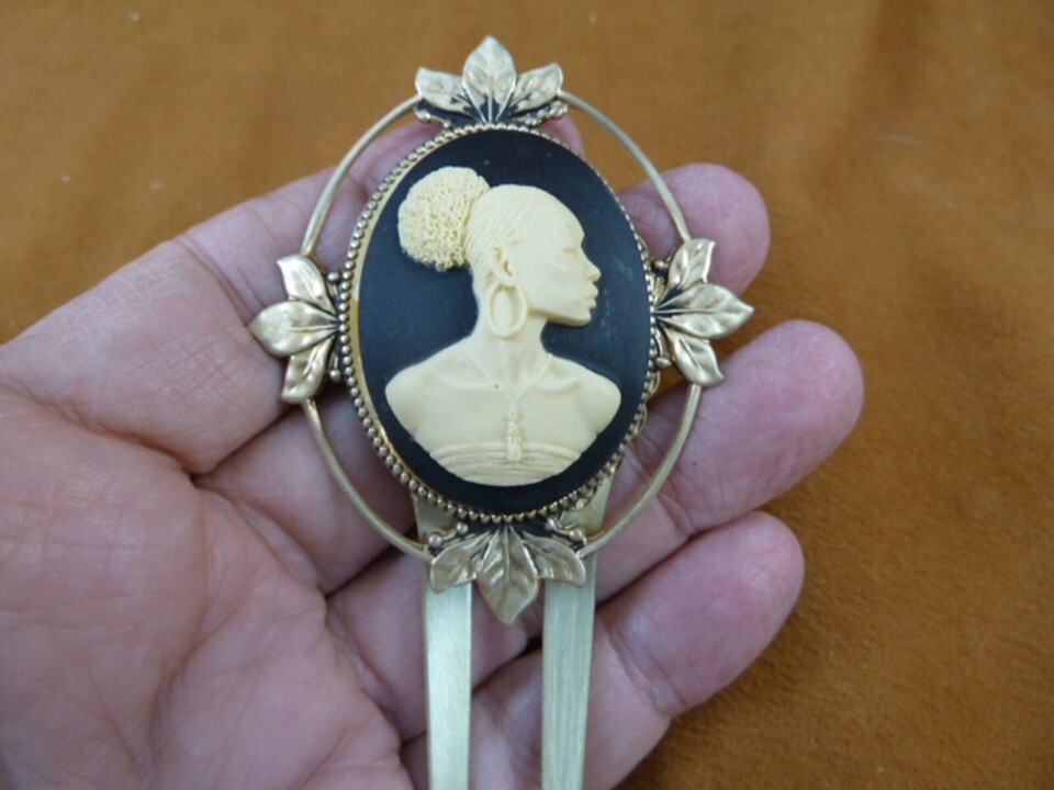 CAH20-6) RARE African American LADY white + black CAMEO Hairpin hair pin comb