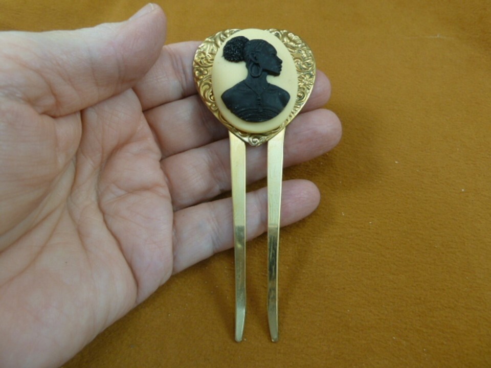 CAH20-2) RARE African American LADY white + black CAMEO Hairpin hair pin comb