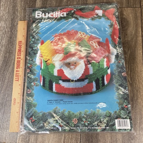 Bucilla Santa Candy Dish Plastic Canvas Needlework Kit New Vintage 61174