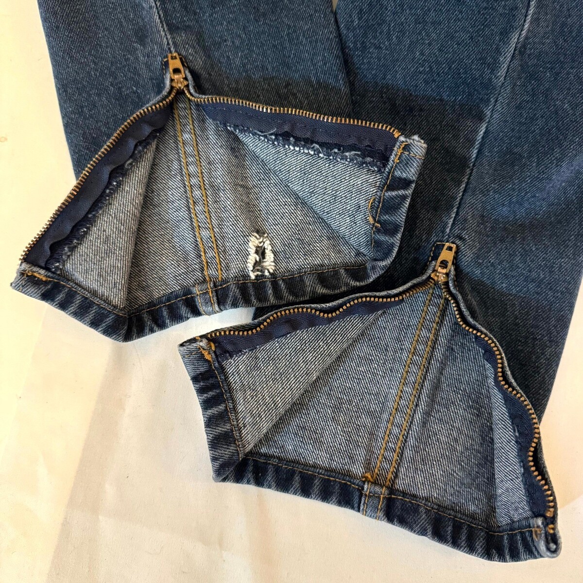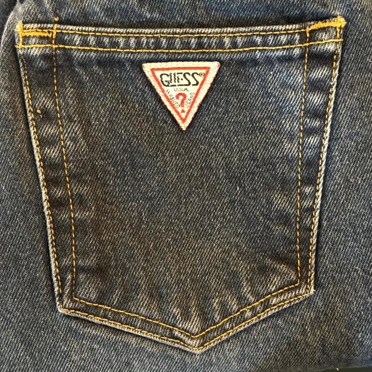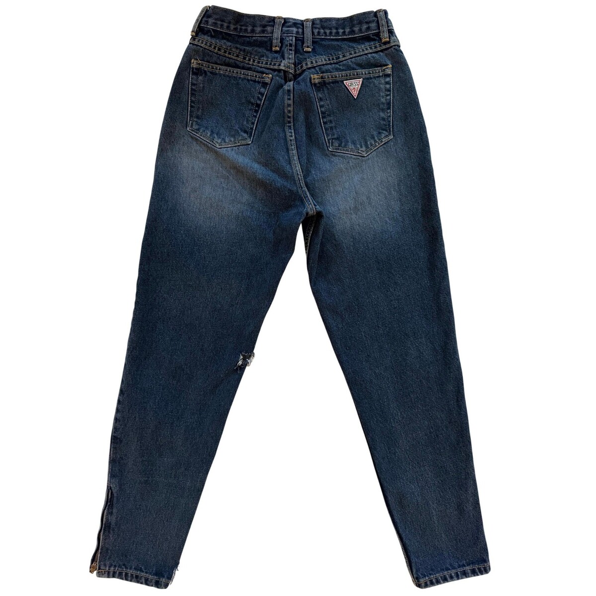 Authentic vintage Guess jeans from the Georges Marciano era ? made in the U.S.A. and crafted from thick 100% cotton denim. Classic high-rise tapered leg with zippered ankle cuffs, a hallmark of late-80s Guess styling. These have the iconic red-triangle logo patch and sturdy construction throughout.