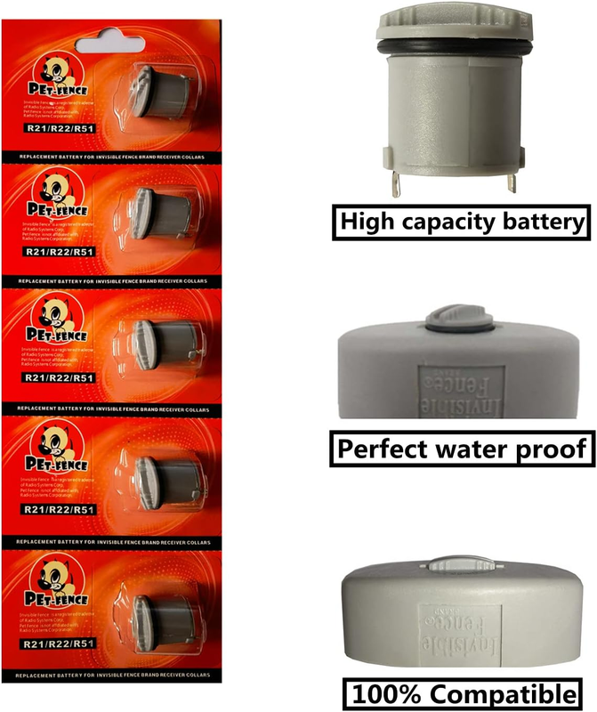 It's 100% compatible r21 r22 r51 and Micro lite invisible fence collar battery, and you only need a coin to install and remove it very easily. Each one is strictly tested to make sure it doesn't fall. His waterproof performance lt is very good, it protects your expensive collar receiver.
