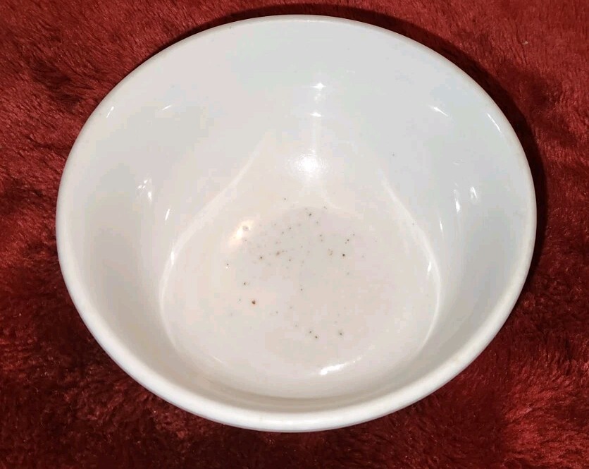 Neat 6 inch bowl. 3 inches tall. Has a small chip out of the base. Some strange wear to the inside bottom of the bowl. Could be a MG defect. Classic ironstone bowl.