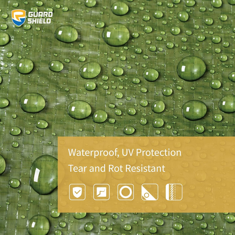 Can be used as weather and yard equipment cover. As outdoor used thin plastic tarp protection sheet for tent, pool, sandbox, boats, cars or motor vehicles. Providing camping shelter from the wind, rain or sunlight for campers. As roof for shade or emergency roof patch material, truck bed cover, debris removal drawstring tarp.