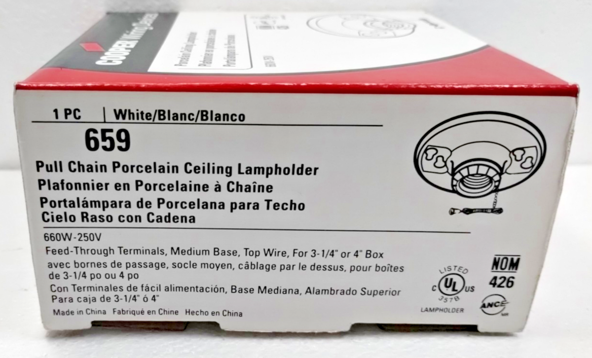 Cooper 659 Pull Chain Porcelain Ceiling Lampholder New