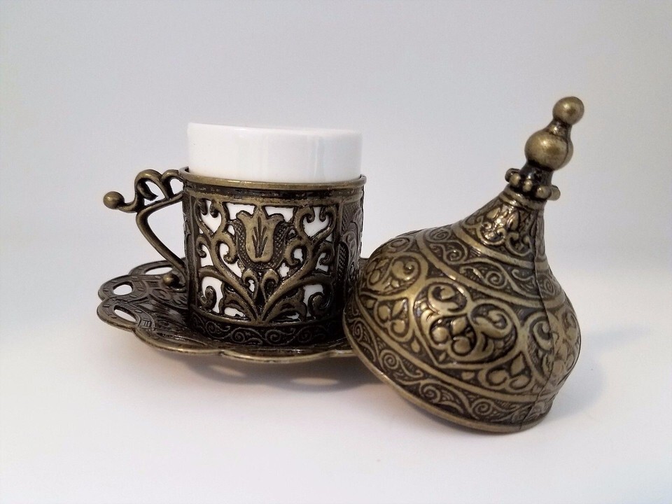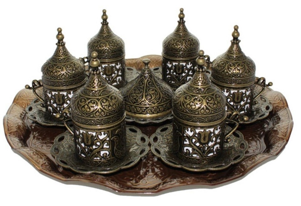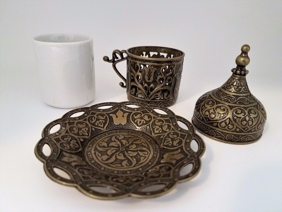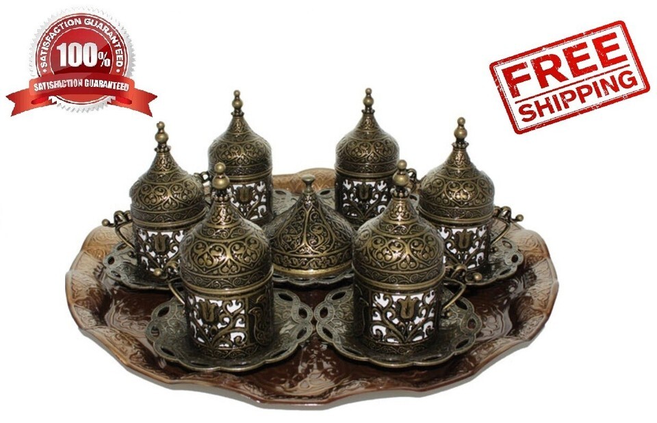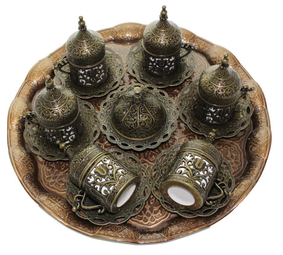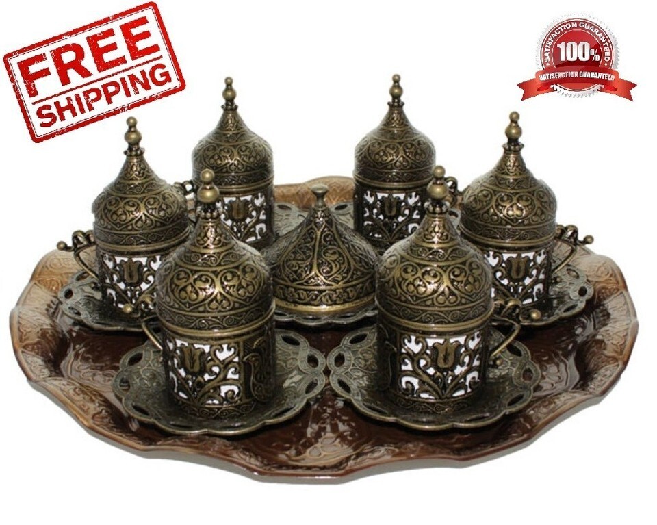 27 Ct Coffee Serving Cup Saucer Gift Set Old Brass Ottoman Turkish Greek Arabic
