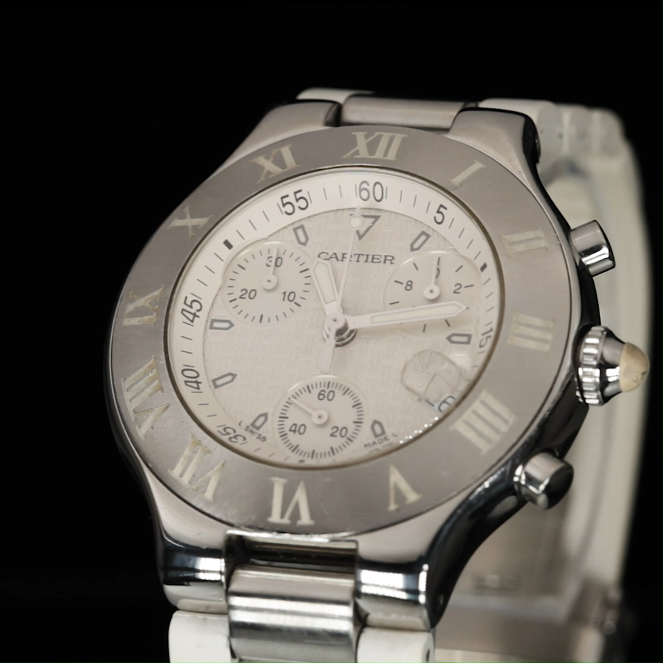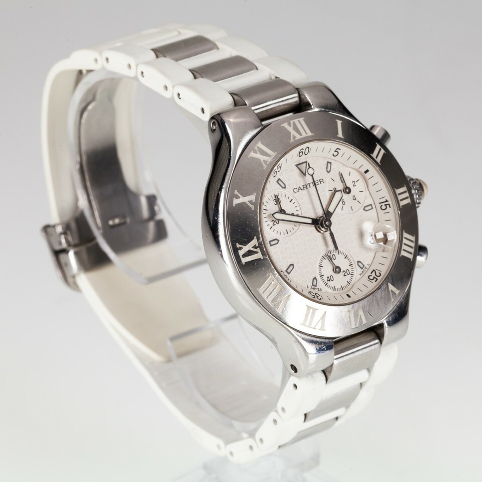 Cartier 2424 Quartz Chronoscaph Watch with Steel and White Rubber Band