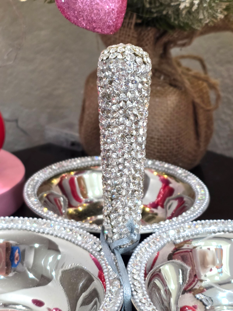 Glitz & Glimmer Silver Rhinestones Christmas Valentines Candy Dish Bowls NEW