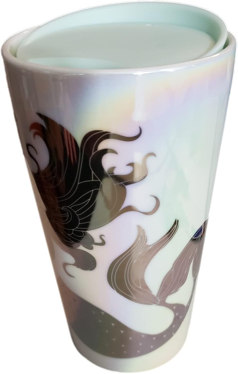 Starbucks Winter 2021 Ceramic Tumbler Pearl White Iridescent Siren Mermaid 12oz