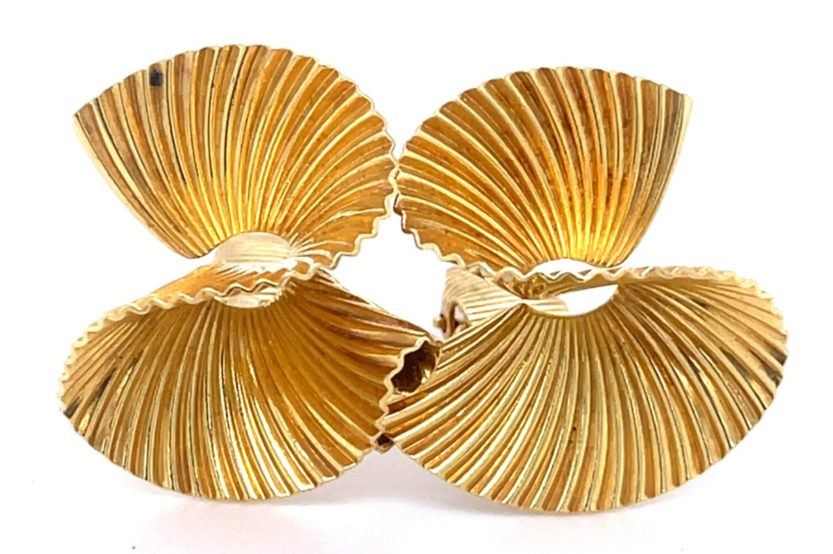 Tiffany & Co. 18k Yellow Gold Vintage Ruffle Ear Clips 1960s