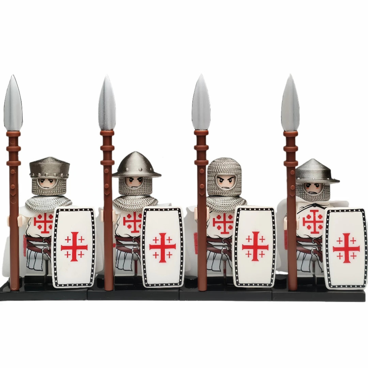 4Pcs Medieval Knight Minifigures EOHSJ Warriors Assembly Mini Building Block Toy