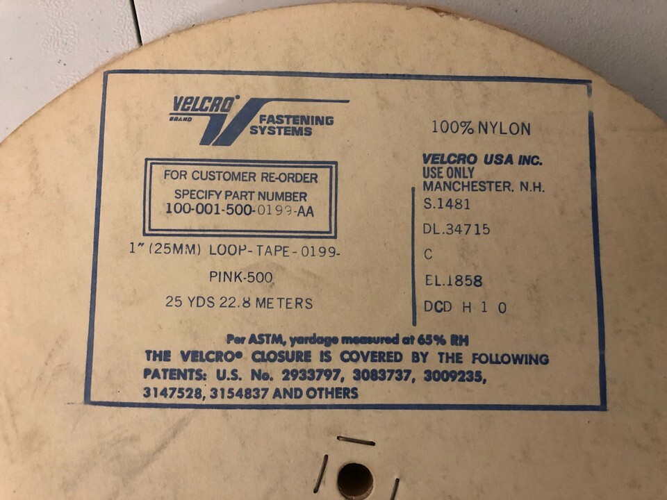 NEW PINK HOOK LOOP COMBO SEW ON 1 INCH WIDTH 25 YARDS PN 100-001-500-0199 AA