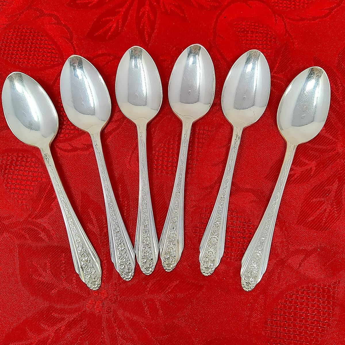 6 Pc Tsp Rogers Oneida Modern Rose Pattern Silverplate FLATWARE TeaSpoons