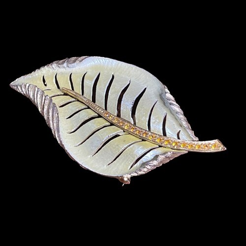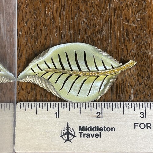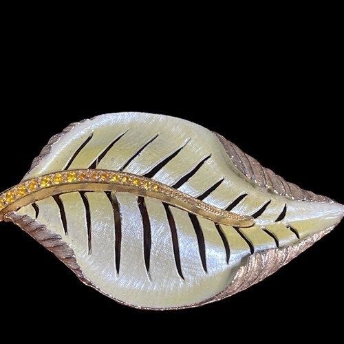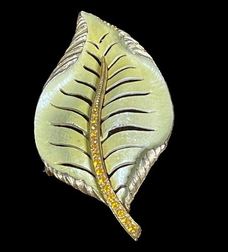 Vintage Brooch Leaf Pin Enamel Rhinestone and 48 similar items