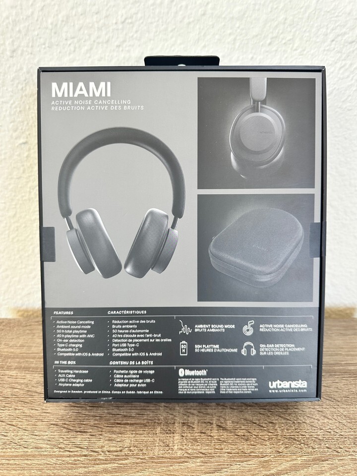 Urbanista Miami Wireless Active Noise Cancelling Headphones Over the Ear Black