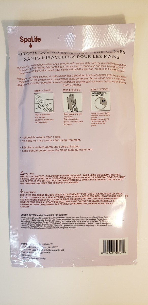New sealed Spa Life Miraculous Moisturizing Hand Gloves with Cocoa Butter Vitamin E.