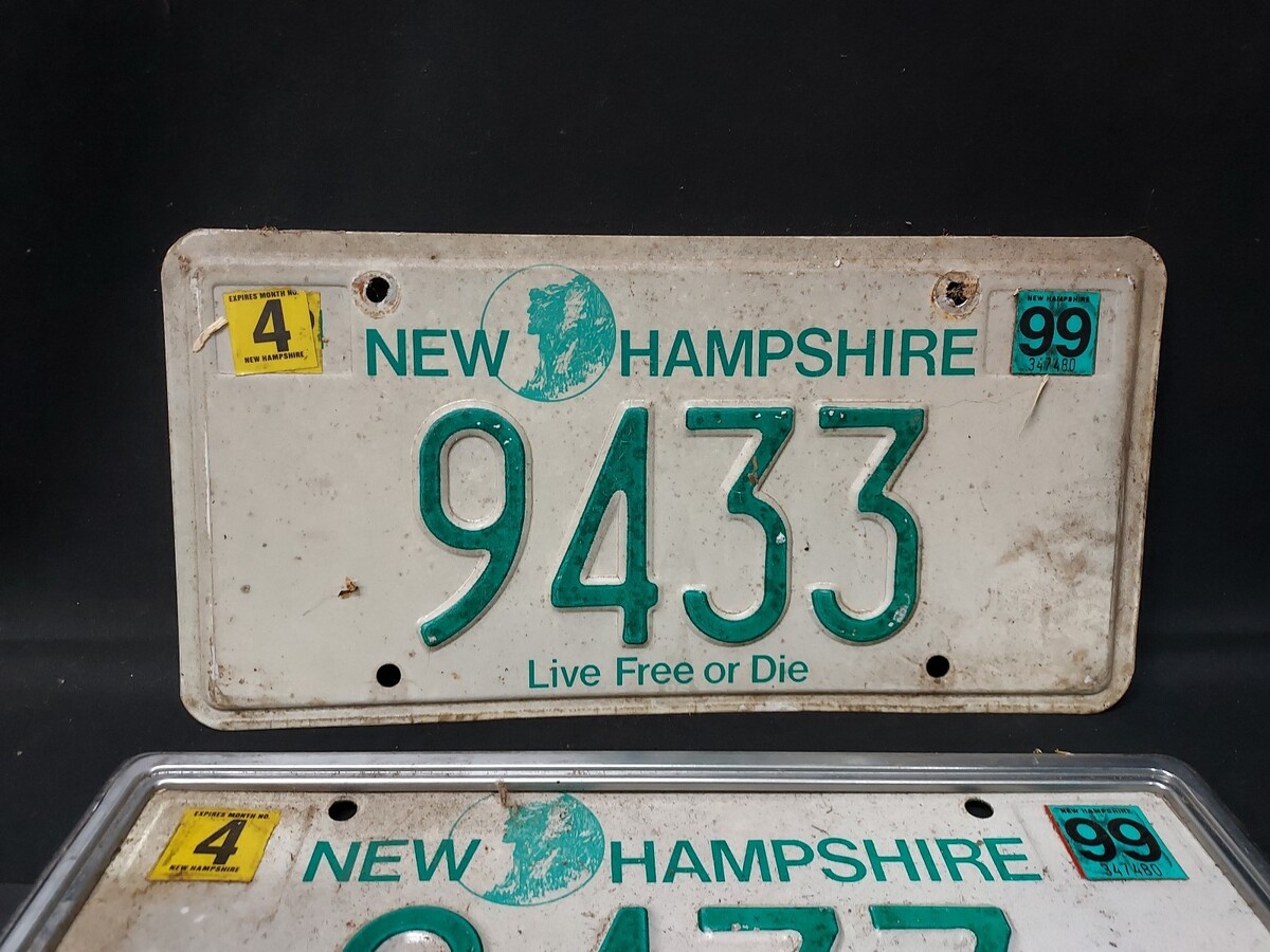 1999 New Hampshire License Plate Set Tags - 4 Four Digit Low Number 9434