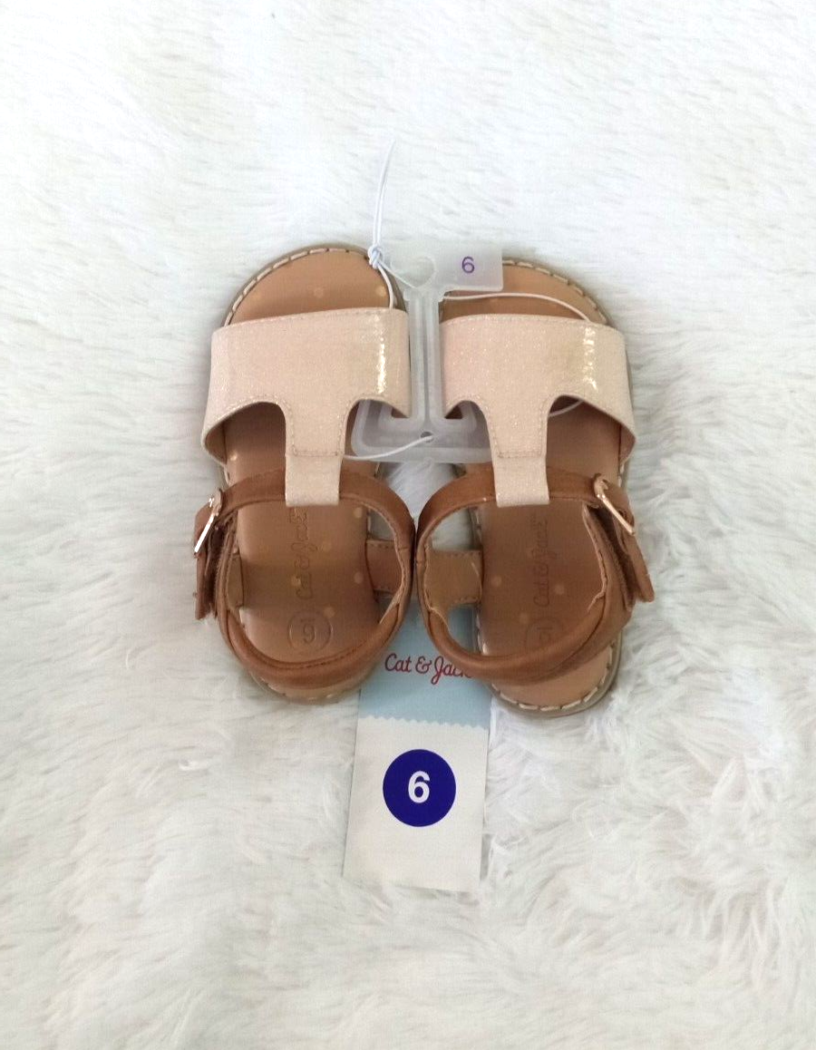 Cat & Jack Toddler Girls Kinsley Glitter Sandals (Size 6) COGNAC COLOR - NEW!!!