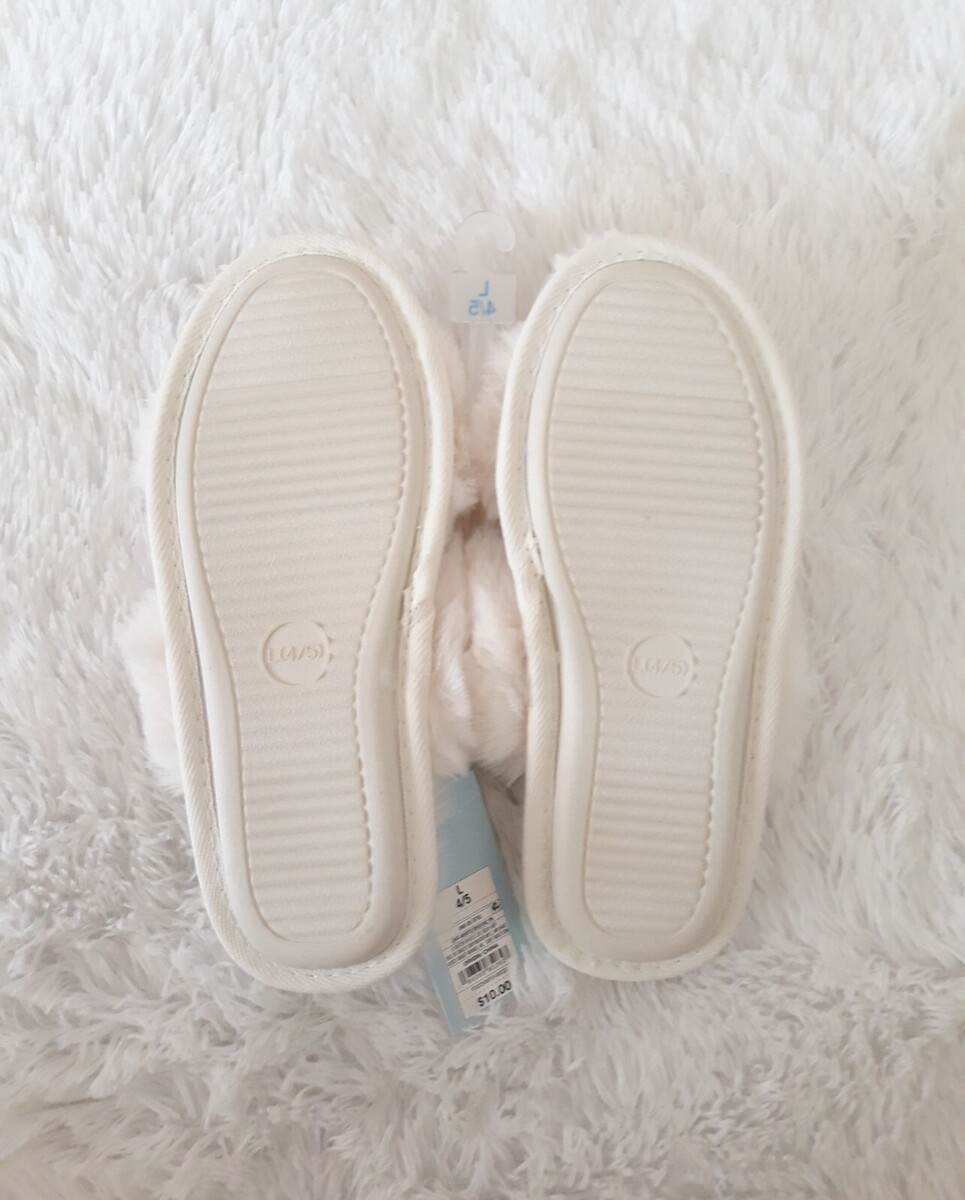 Cat & Jack Girls Soft & Furry Cross Front Slide Slippers (Size L/4-5) Cream -NEW