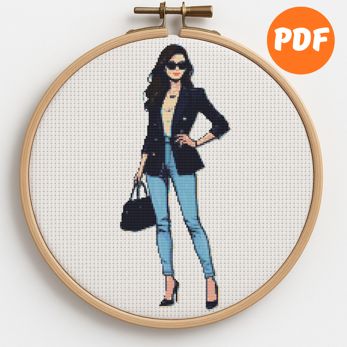 A girl with a fashionable bag - Cross-stitch pattern, Instant download