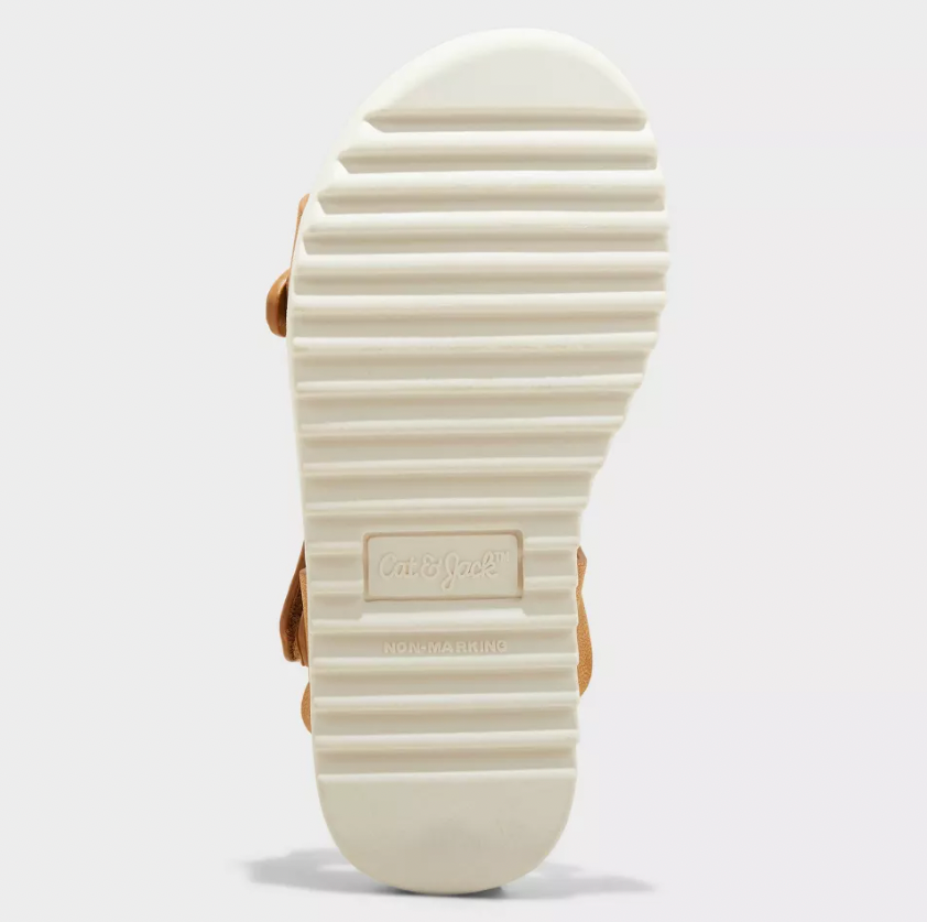 Your toddler will slide into comfy style every day with these Shaelyn Sandals from Cat Jacka?. These round-toe sandals are quick and easy to wear and equally comfortable to walk in thanks to the contoured footbed. Featuring an open toe and back for breezy comfort, these medium-width sandals are designed with an adjustable strap on top and a hook-and-loop ankle strap to offer a secure fit that stays on their feet. Construction: Contoured Footbed, Adjustable Hook and Loop Strap Footwear Insole Material: 100% Polyester Features: Hook and Loop Closure Care and Cleaning: Wipe With Damp Cloth Footwear Lining Material: 100% Polyethylene Footwear Upper Material: 100% Polyurethane Footwear Outsole Material: 100% TPR (Thermoplastic Rubber) Footwear toe openness: Open Toe Footwear outsole details: