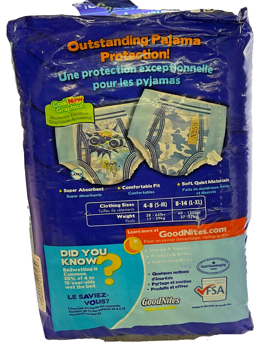 GoodNites Boys Underwear For Nighttime, Jumbo Size 4-8/S-M, 15 ct