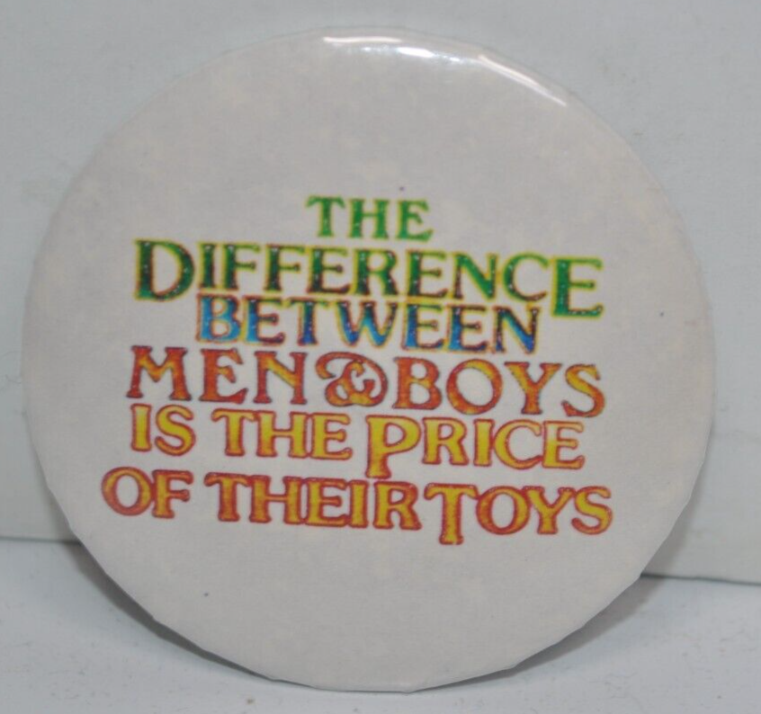 Vintage 80s "The Difference Between Men Boys Is The Price of Their Toys" 2-1/4" Pinback Button Pin
