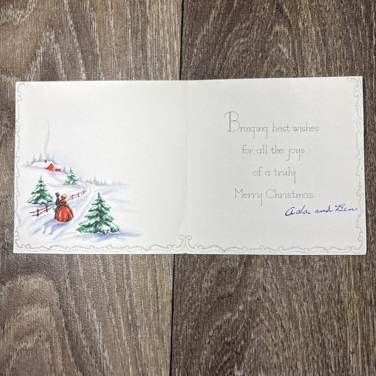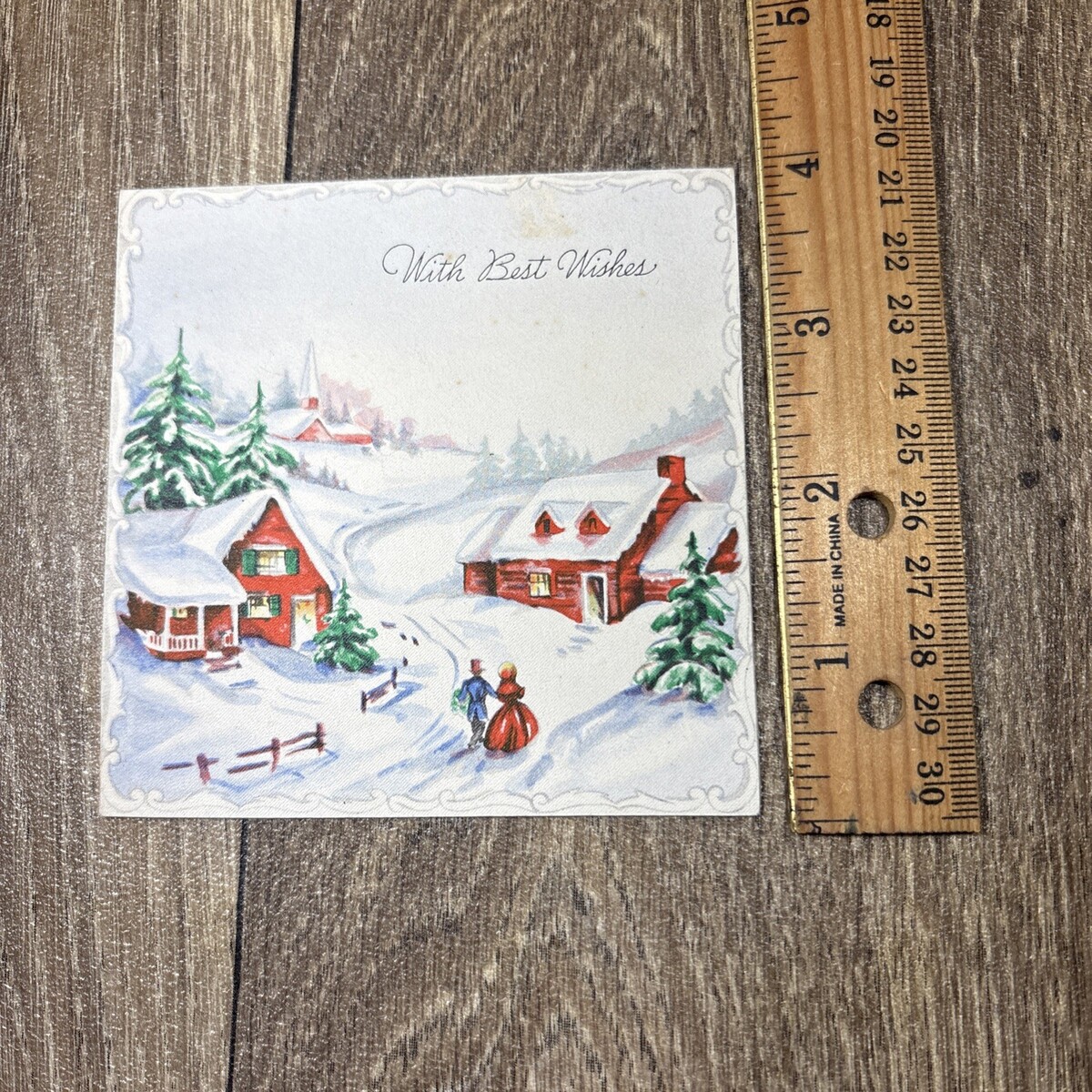 Vintage Folded Christmas Holiday Card Victorian Snow Scene Hallmark
