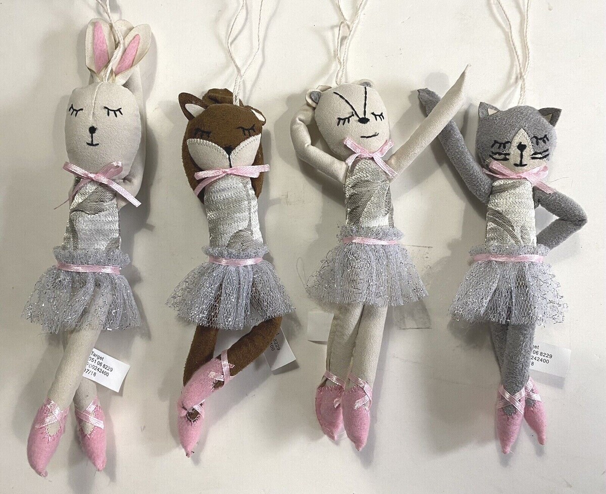 This is for a brand new with tags Plush Ballerina Critters Silver Tutu Fabric Christmas Ornament Pick from Cat, Bear, Fox and/or Bunny