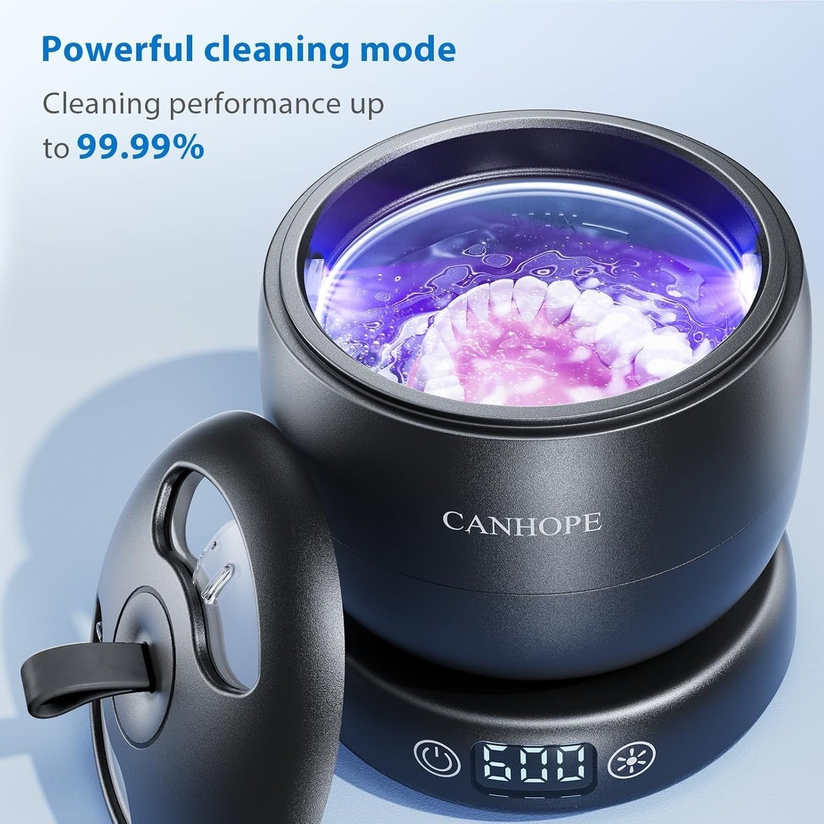 3 Smart Timer Auto Shut-Off for Effortless Care: Customize your clean with preset options: a 5-minute quick refresh, 8-minute daily clean, or 10-minute deep cycle. The one-touch operation and automatic shut-off provide a hassle-free experience while saving energy. CANHOPE retainer cleaner machine is perfect for a fast, effective clean that fits seamlessly into any routine.