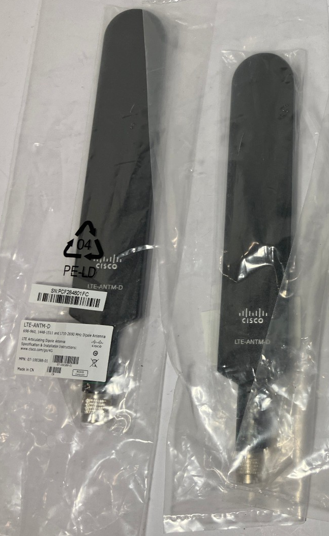 This listing is for a Lot of 2 NEW Cisco 4G LTE NIM Wireless Antenna LTE-ANTM-D TNC Male for NIM-LTEA-EA and similar Cisco products.
