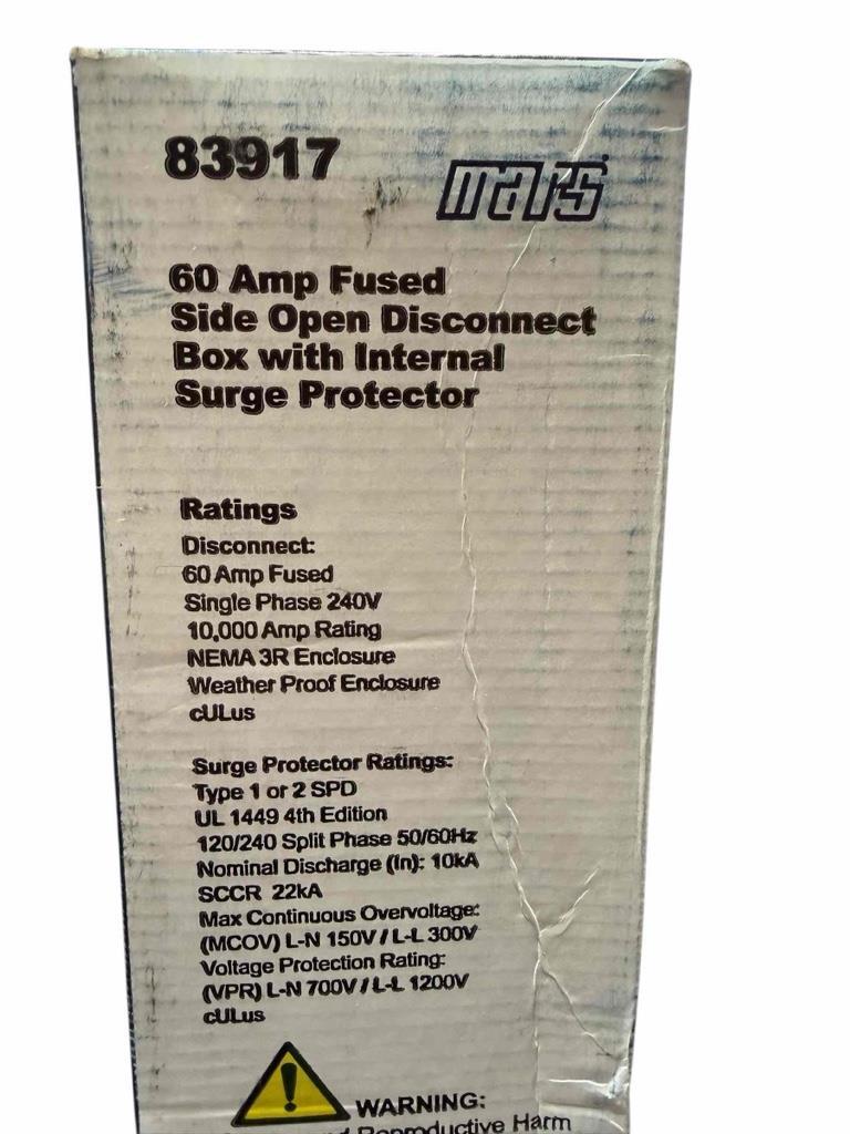 NEW MARS 60 AMP FUSED SIDE OPEN DISCONNECT BOX WITH INTERNAL SURGE PROTECTOR 83917.
