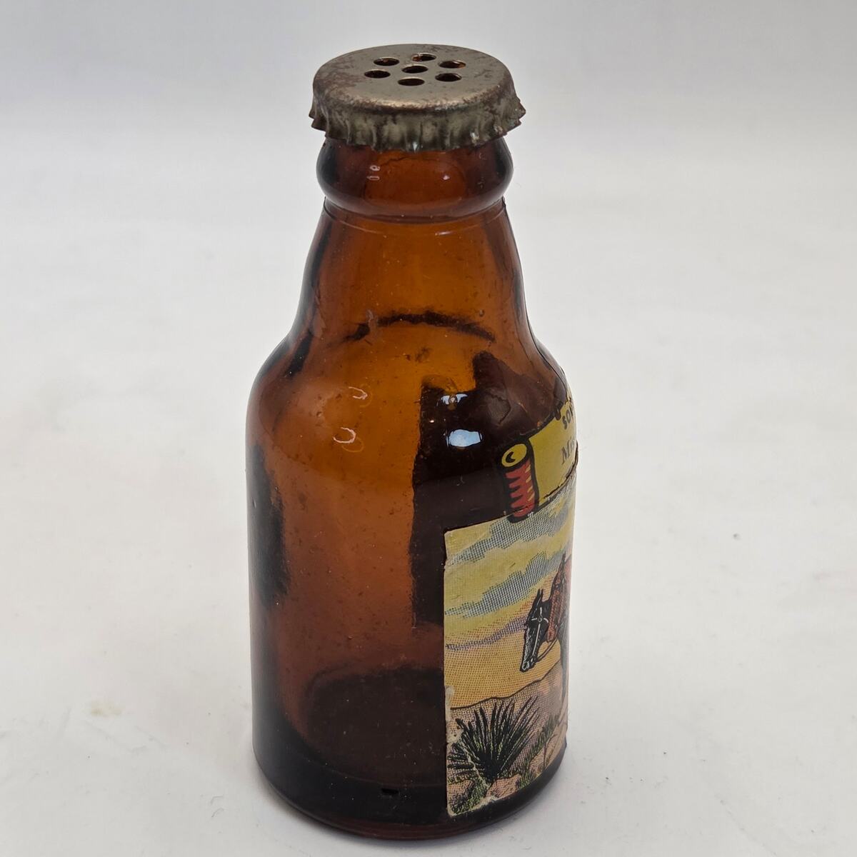 Vintage Mission Texas Souvenir Amber Glass Shaker Bottle Motel Buffalo Pat Pend