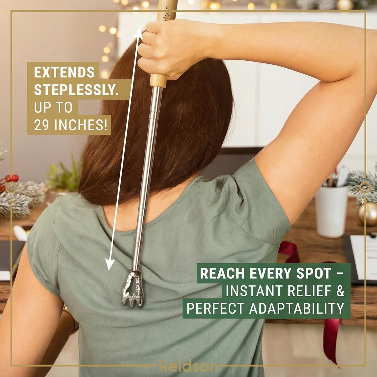 ? The stainless steel telescopic back scratchers stretch up to 73 cm, helping you easily reach tricky spots on your back. The ideal extendable back scratcher for your back scratch!