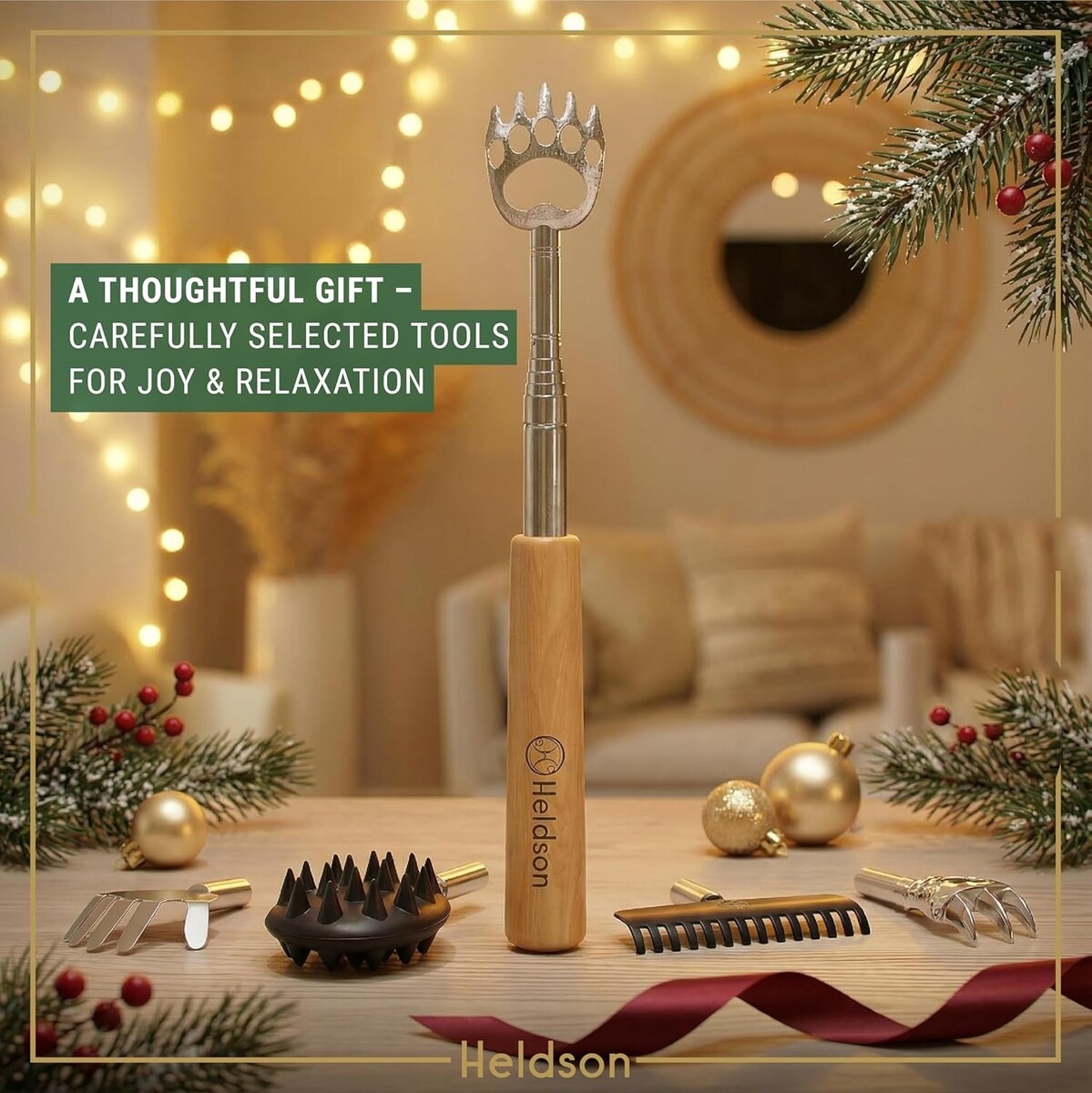 Telescoping Back Scratcher with 5Pcs Detachable Scratching Heads, Fathers Day Da