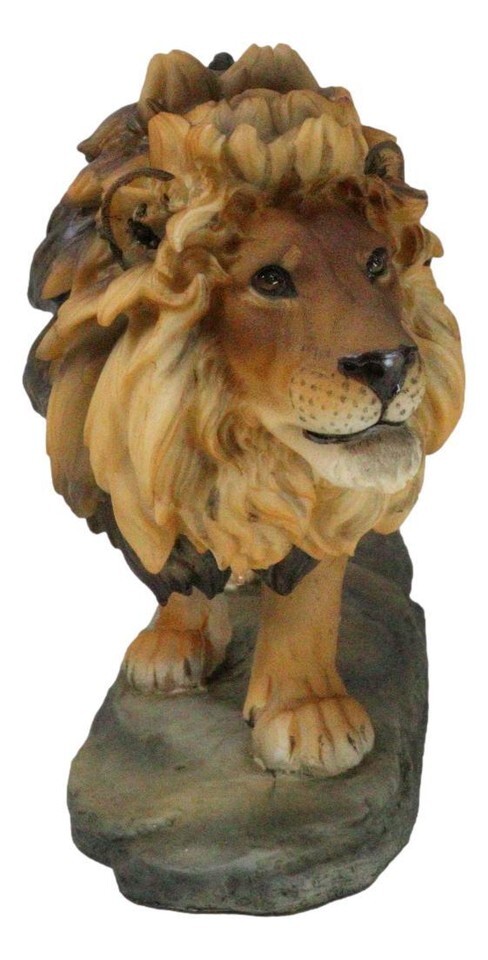 African Savanna Safari Wildlife Majestic Lion Prowling in Grasslands Figurine