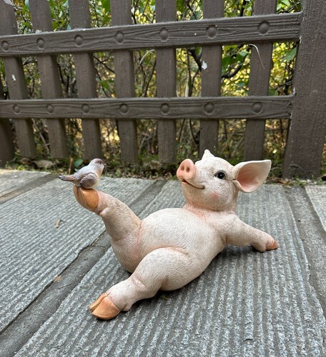 ? Even if you are not a Yoga enthusiast or a follower of the teachings of Yoga, the sheer peacefulness on this guy's face will inspire you to smile, be happy, feel joy and contentment. Stretching in the famous cobra pose, the angel hog maybe 'big' but he is limber and flexible; two legs kicked out to its back while holding the two front legs in a proud horse stance. He will light up your garden and indoors wherever you put him!