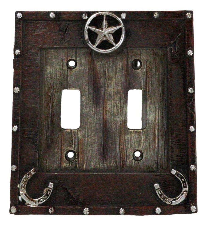? It is now very easy to transform your space at your home or office into a rustic Western exotic getaway with these switch/rocker plate covers. A western star circle and horseshoes take center stage in the plate design. Each plate is also bordered and backdropped by faux wooden cowboy salon plank slates.