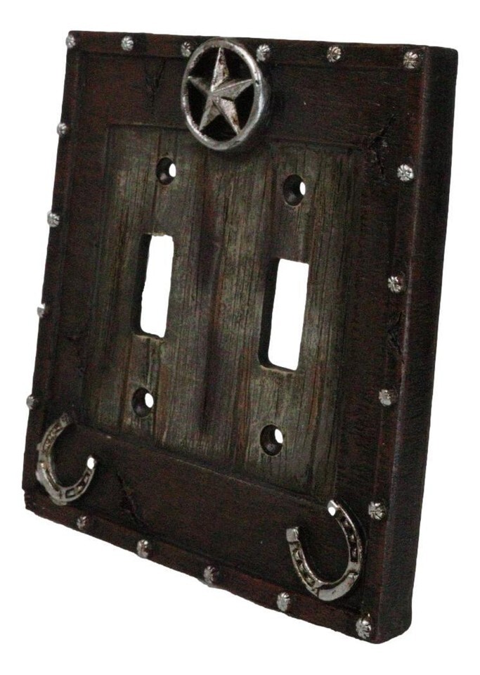 Set Of 2 Rustic Western Star Lucky Horseshoes Double Toggle Switch Plate Covers