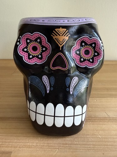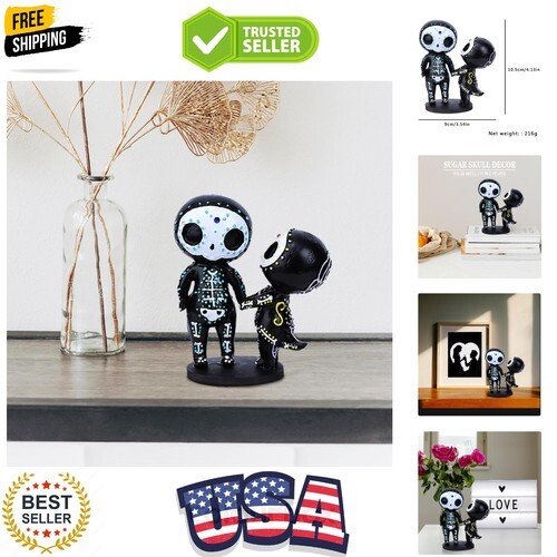 ? This Day Of The Dead Skeleton Couple Shelf Sitter figurine stands at 6.75" tall, 4.25" wide and 3" deep approximately. The sculpture weighs 8 ounces.