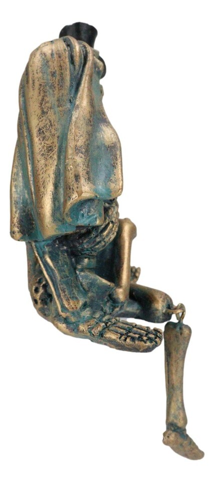 ? This Day Of The Dead Skeleton Couple Shelf Sitter figurine is made of designer composite resin, hand painted and polished with a greenish blue metallic patina individually.