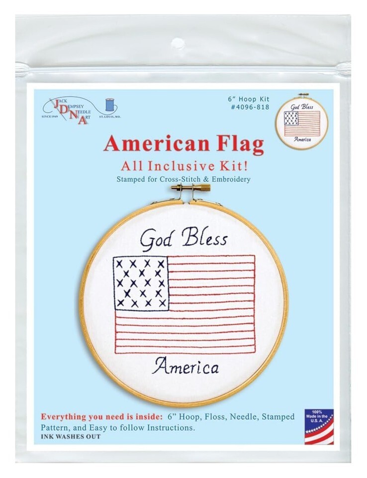 Jack Dempsey Needle Art American Flag 6 Inch Hoop Kit.