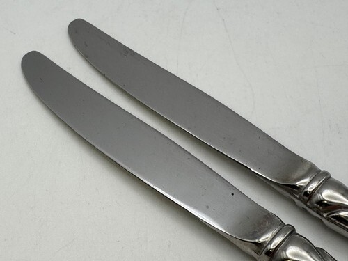 These dinner knives measure 9 1/4" in length and are in good estate condition with just light wear from regular use.