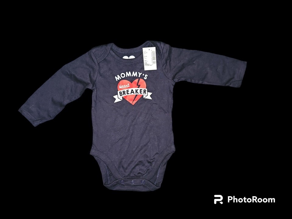 Dress your little one in this adorable blue onesie from The Children's Place. Featuring a cute 'Mommy's Heart Breaker' theme, this one-piece is perfect for your 3-6-month-old baby or toddler. The onesie comes with tags, so you can be sure that it is brand new and has never been worn.