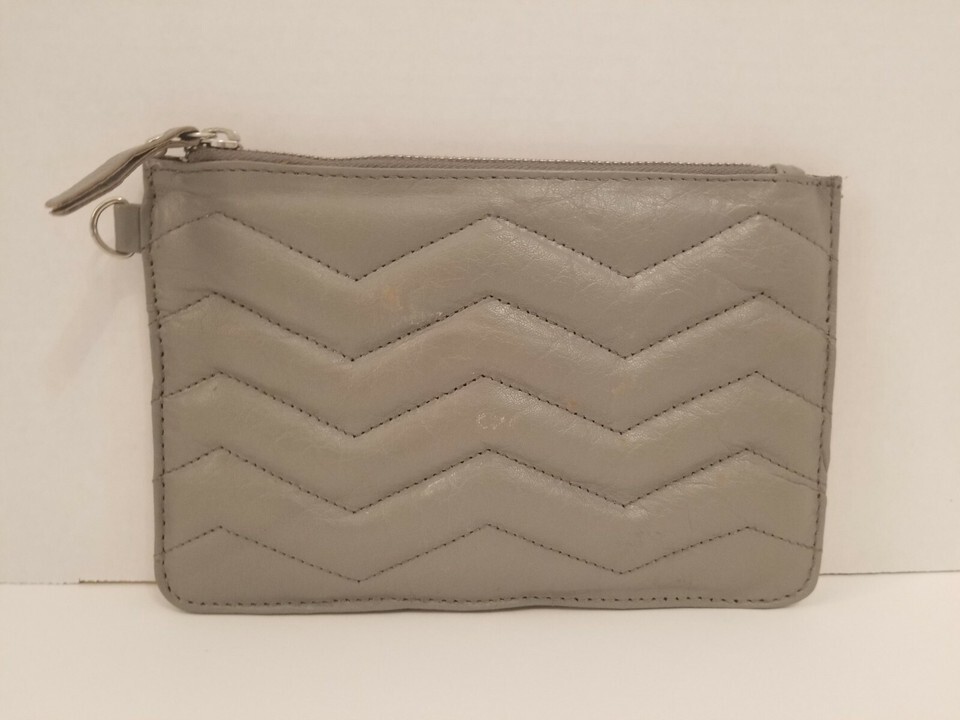 Gray Quilted Leather Zippered Clutch Wristlet NWOT