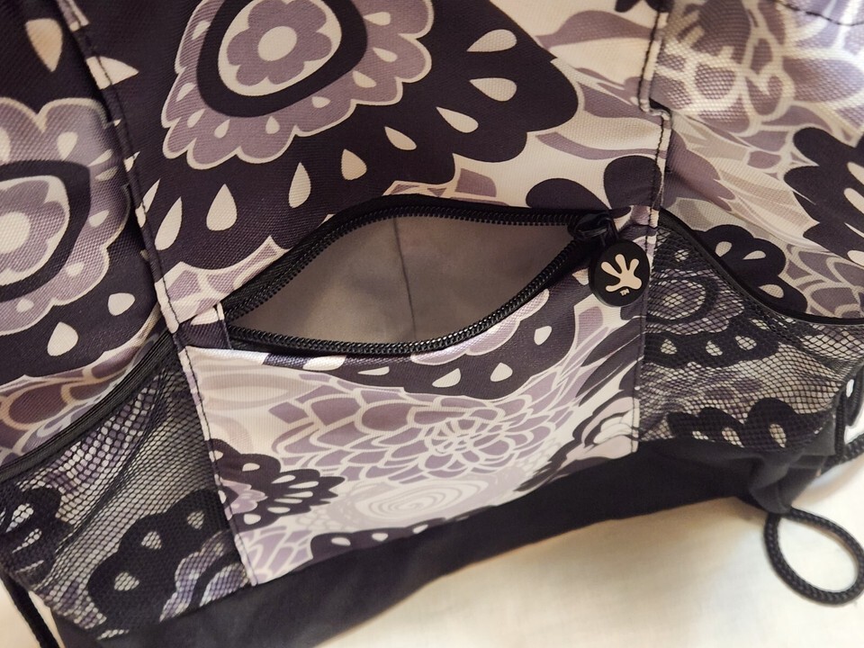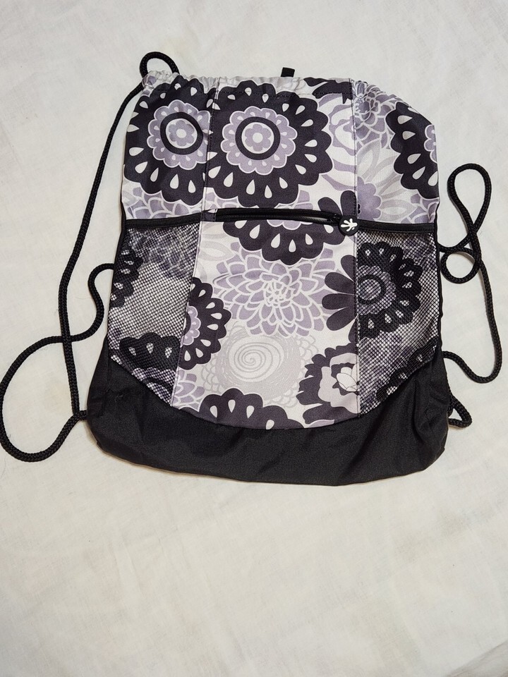 Designs Bright Floral Purple Drawstring Bag Backpack Zip Pocket Medium