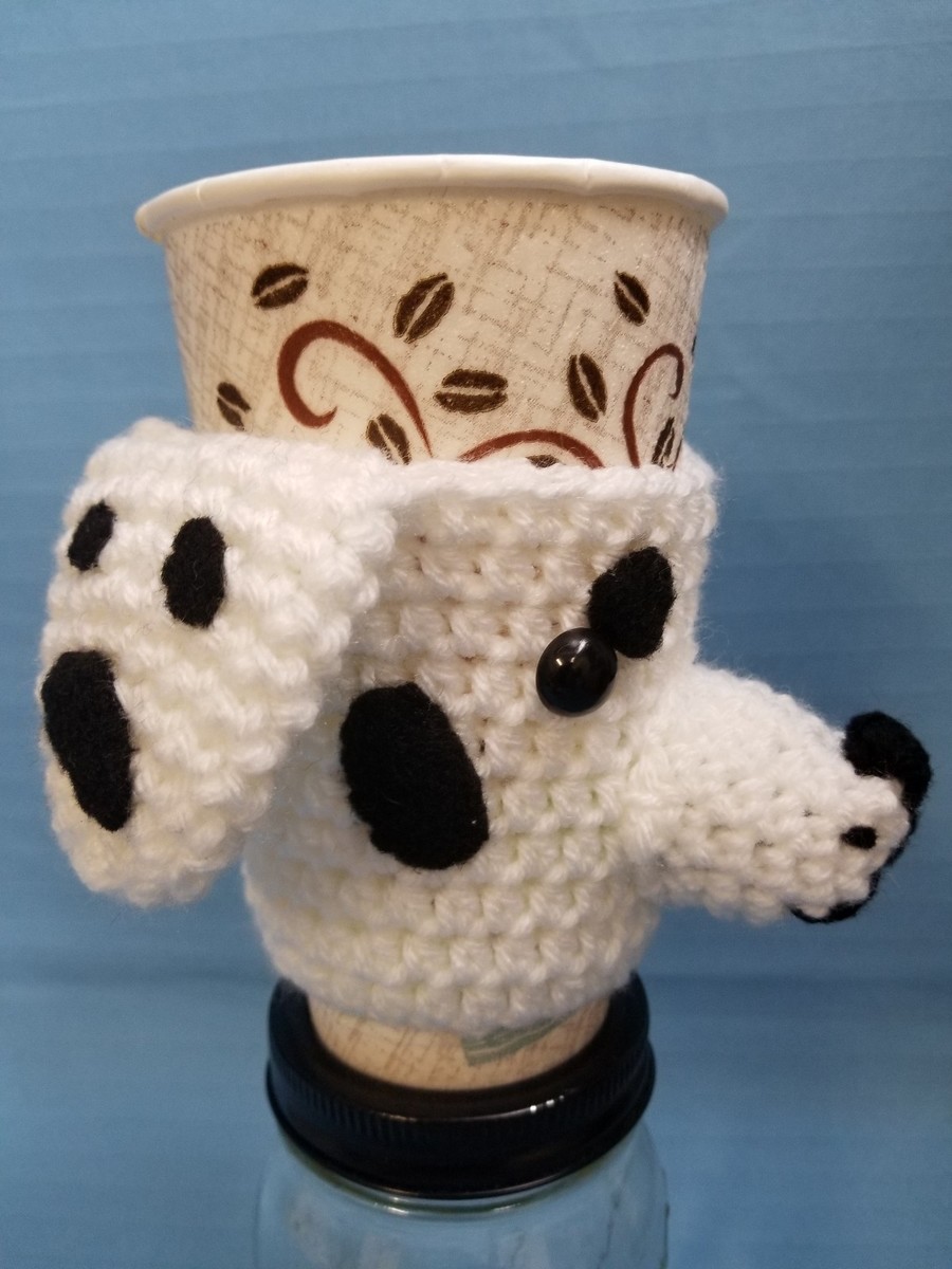 Dalmatian Damation Black Whit Dog Crochet Handmade Cup Cozy Holder Gifts by Bren